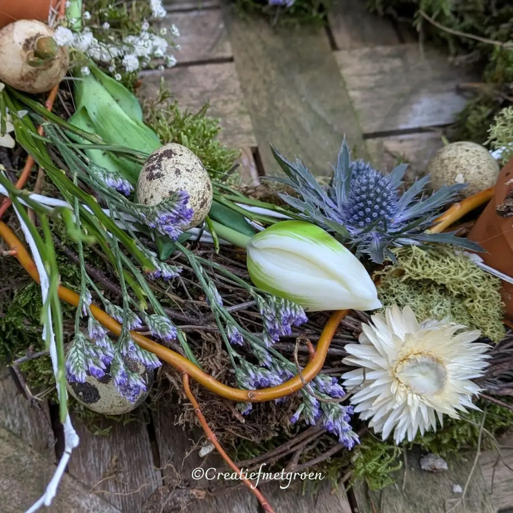 Heb je ook zo’n zin om zelf iets moois te maken voor deze tijd van het jaar? Met ons DIY pakket maak je zelf jouw eigen 🌿🪻 Frisse Lente Krans🪻🌿 De basis is een strokrans die je gaat omwikkelen met mos en een natuurlijke mix van mooie materialen. Zijn de bolletjes uitgebloeid? Dan vervang je ze heel makkelijk weer door verse. Zo heb je extra lang plezier van deze krans!
