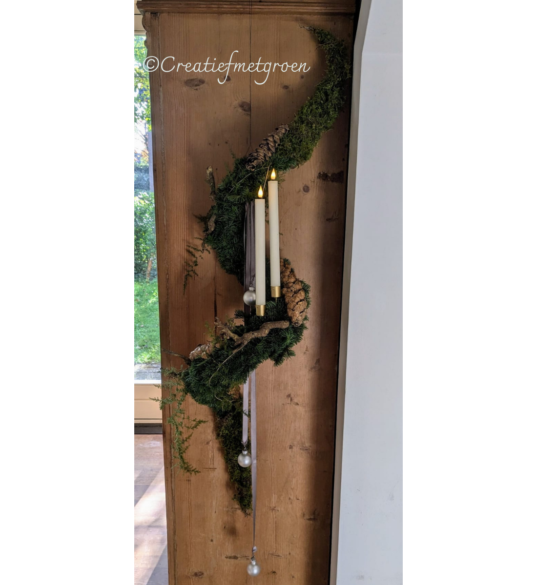 Deze prachtige kerstspiraal is gemaakt van Nobilis, mos en wilde asparagus, drie groensoorten die prachtig indrogen en daardoor langdurig mooi blijven. U geniet dus extra lang van deze feestelijke creatie.