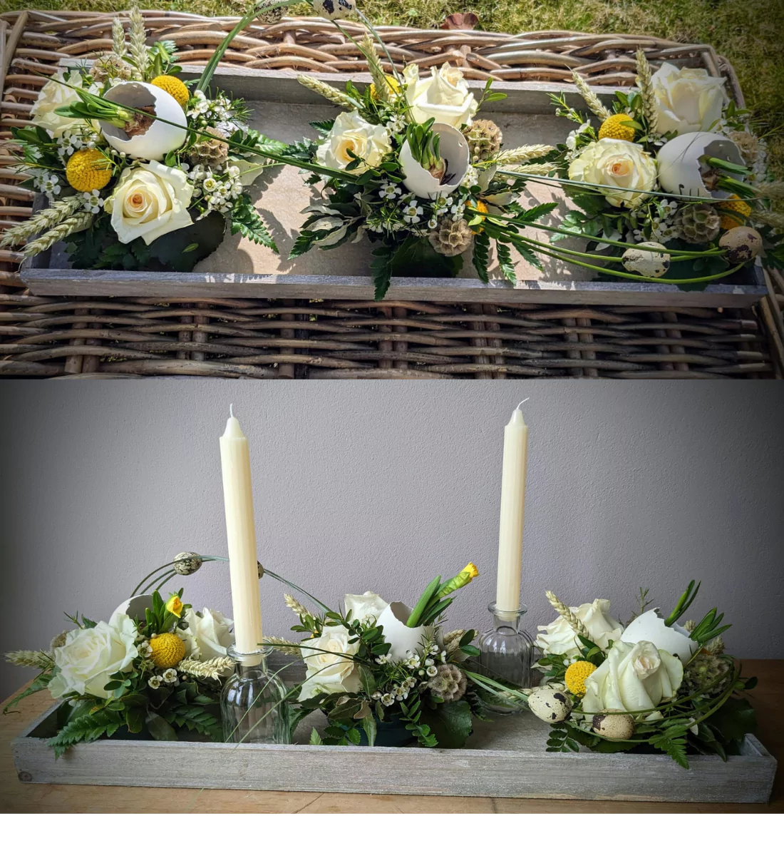 Voor extra aankleding kunt u optioneel de kaarsen in glazen vaasje er bij bestellen.