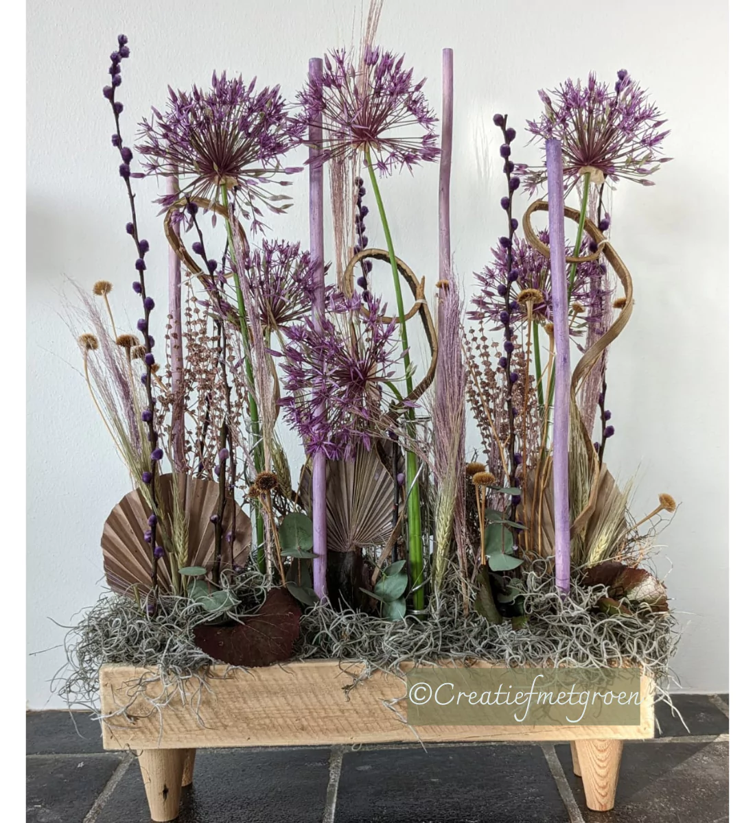 Erg mooi, lang houdbaar bloemstuk, graag zou ik hem willen bestellen,uitverkocht zie ik, misschien als nabestellingen in maart?! Groetjes Anny