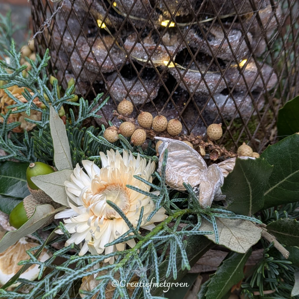 In het pakket zitten alle materialen die nodig zijn om het bloemstuk te maken!